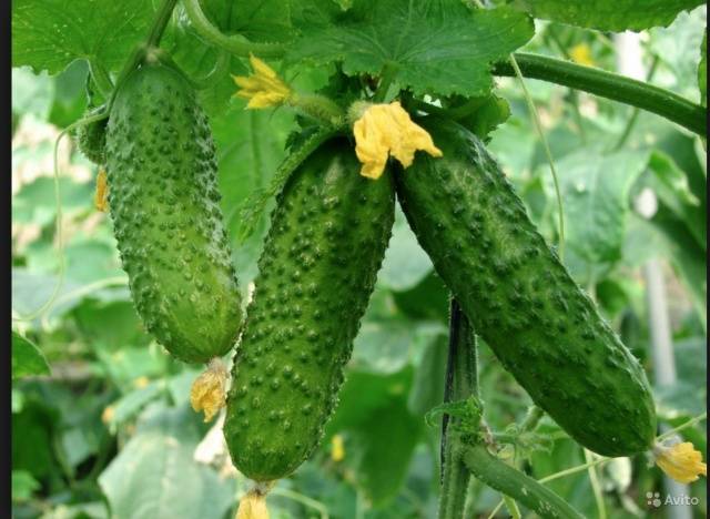 These hybrid cucumbers take 40-55 days to mature. They have good resistance to diseases such as powdery mildew and spot.Elongated large-knobby fruits reach 12-15 cm long, weighing 120 grams. This variety has excellent taste and is used for pickling.