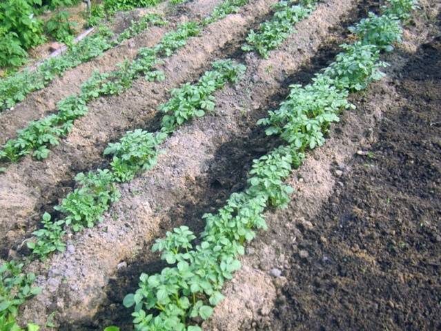 Potatoes do not like drought and too much heat, so you need to provide regular artificial watering of the site and monitor the condition of the soil between the bushes.