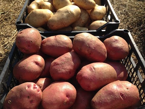 The root system is carefully pried with a pitchfork and the bush is pulled out. Potatoes are best harvested in dry, windy weather. So it will be better stored and less subject to rotting.