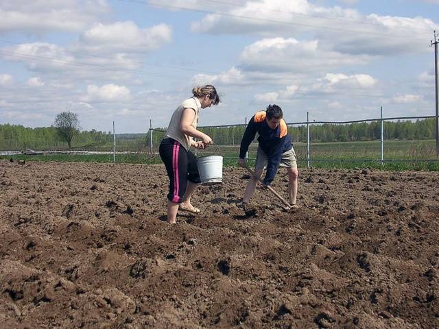 Sowing potatoes is carried out in spring on dry soil. Wet ground is difficult to form into ridges.