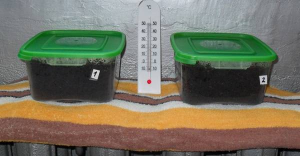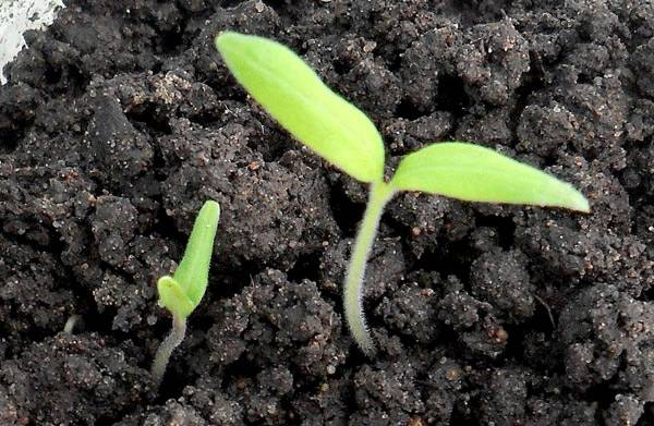 Germinated tomato seeds can be sown in the ground for seedlings, but it is also necessary to carefully monitor the existing temperature regime. So, it is especially important at the initial stage to place crops in a warm place in order to get seedlings as soon as possible. That is why, after sowing and watering, the pots with crops are covered with a protective film or glass, placed on a surface with a temperature of + 23- + 250FROM.