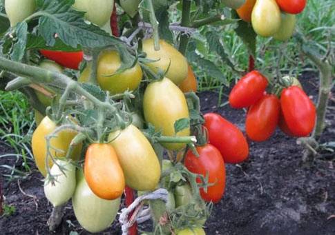 Tomatoes "Shuttle" form fruiting clusters above 6 leaves. On each of them, 6-10 simple flowers are formed at once. If you want to get larger fruits, pinch the brushes, leaving only 4-5 ovaries. They are especially well loaded with nutrients and juice, resulting in large-fruited tomatoes. If you do not pinch the fruiting brushes, then the result can be a large number of medium-sized tomatoes. An example of such fruits can be seen above in the photo.