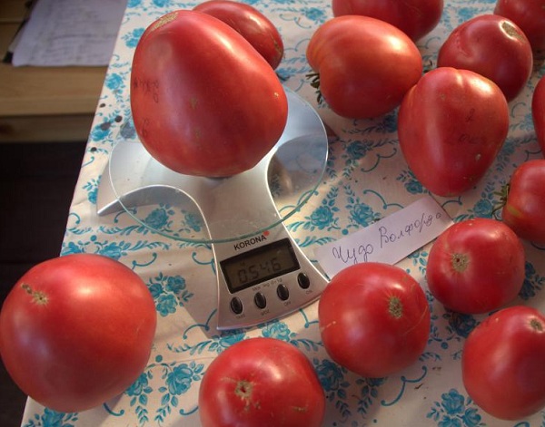 The skin of the fruit is firm and firm, crunches upon tasting. The Miracle Walford tomatoes taste juicy, sweetish. The peel has a slight sour aftertaste, although the composition contains sugar up to 6.5%. Beautiful fruits with a glossy sheen are located on the bushes in alternate brushes of 2-3 tomatoes. In diameter, juicy tomatoes reach 8-10 cm.The average weight varies from 250 to 350 g.