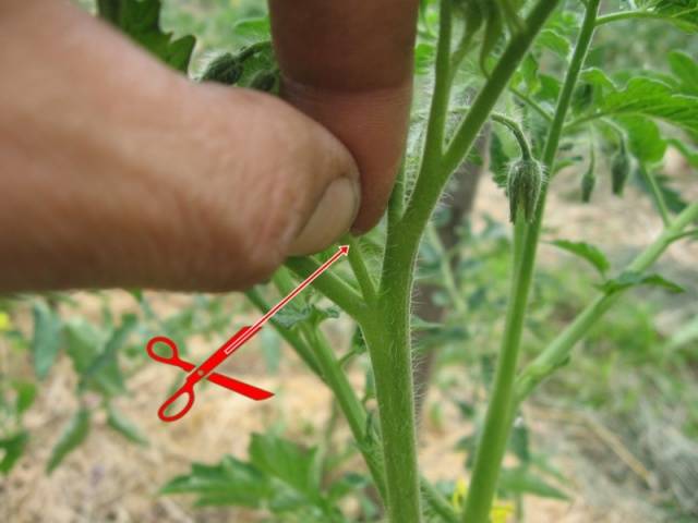 After two days, stepchildren and leaves are removed at a height of 30 cm from the ground. Form a plant in 2-3 stems. All other stepchildren are removed all season.