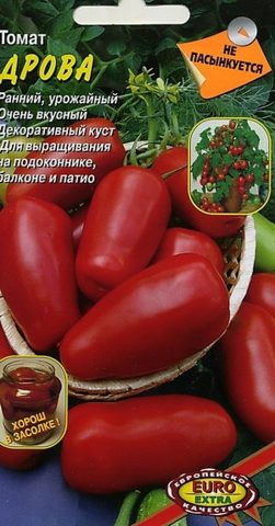 A distinctive feature of Drova tomatoes is the high quality of seeds and good germination. Small containers can be used for growing, since the root system is not as well developed as in other varieties.