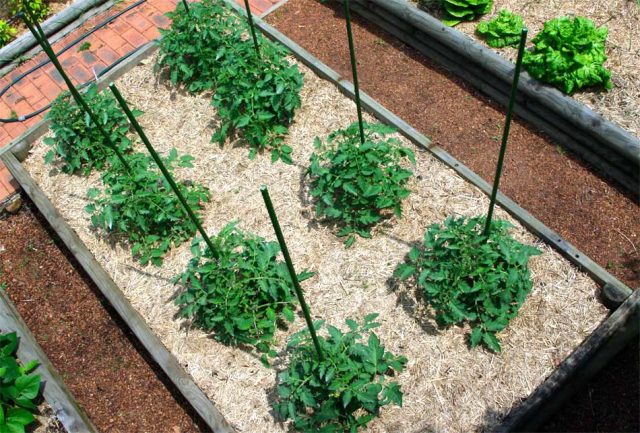 Water the tomatoes as needed, avoiding the soil being waterlogged or too dry. After planting, the soil is mulched to reduce the growth of weeds. Organic or minerals can be used as fertilizers.