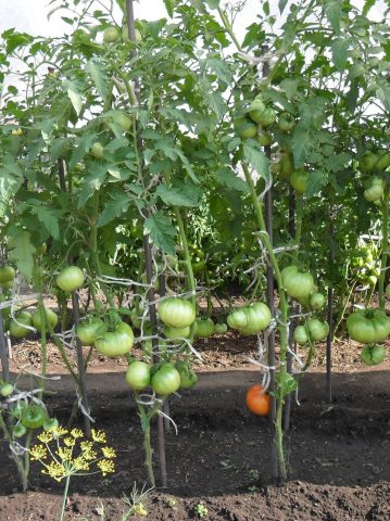 To increase fruiting, tomato pinching is carried out: removal of young shoots. It is recommended to form this variety in 1-2 trunks. For this, the most powerful escape is left.