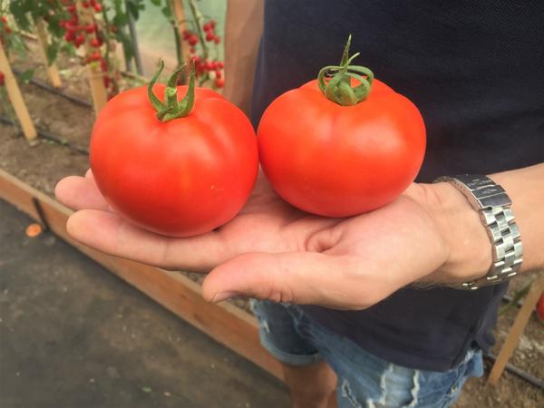 The early-ripening tomato variety bears fruit within 78 days after planting the seeds - and at the same time, tomatoes ripen evenly and simultaneously. In appearance, ripe fruits are very beautiful - rounded, with small protrusions near the stalk, they have a bright red saturated color and a dense shiny skin. There is no green spot at the point of attachment of the tomato to the stem during the ripening period - the shade of the fruit remains uniform.