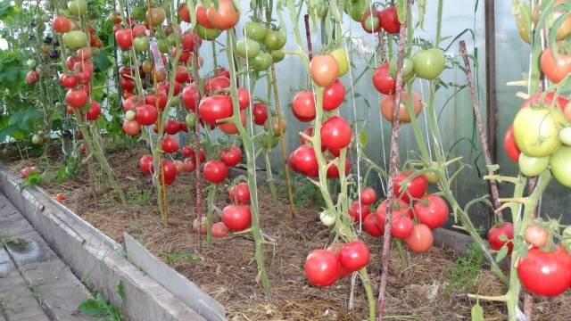 Raspberry Miracle tomatoes produce high yields with proper care. Plants need watering and feeding. The soil under the plants is loosened and mulched with straw or peat. Plants are pinched regularly to improve their fruiting.