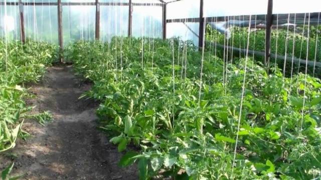 When tomato seedlings have taken root, do not wait for the bushes to stretch out. You need to take care of the trellis in advance. For its manufacture, posts are driven in so that they protrude at least 2 m above the ground. A rope or wire is pulled between the supports. As the bushes grow, the stems are tied to the trellis with strings. Tomato brushes are very heavy so that the branches can hold them. They will have to be separately tied up or propped up.
