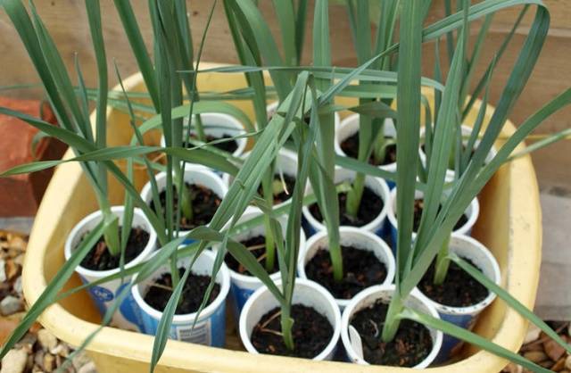When shoots appear, leeks are placed in a lighted place. The root system is protected from hypothermia. To do this, place containers on a foam base.