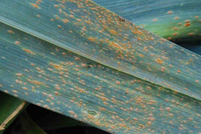 - Rust. The manifestation of the disease is red spots on the leaves. To cope with it at an early stage will help the treatment of plantings with a solution of Bordeaux fluid.