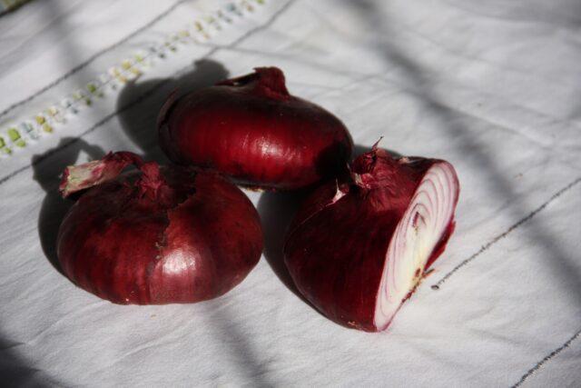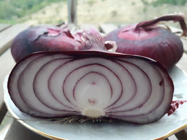 Red onion Yalta is a salad variety with medium-sized flat-round fruits. Its weight is 200 g, but there are specimens whose weight reaches 300 g.