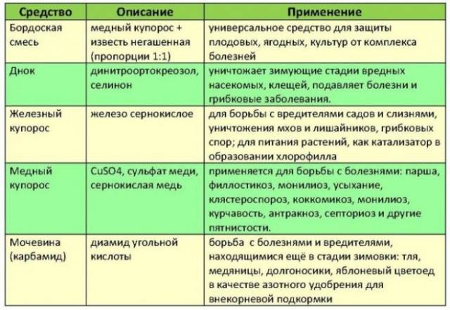 As a "chemistry", domestic gardeners usually choose inexpensive organic products such as copper and iron vitriol, Bordeaux liquid, urea. Later they are joined by aggressive insecticides and safe biological products.