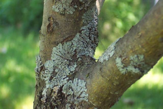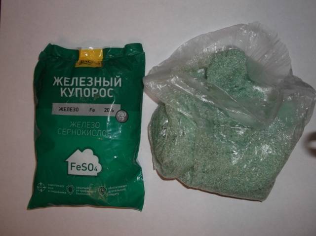 Young trees with thin bark are sprayed with a solution of 50 grams of ferrous sulfate and 10 liters of water. Depending on the thickness and condition of the bark, the dosage of vitriol for mature trees can be increased to 100 grams.