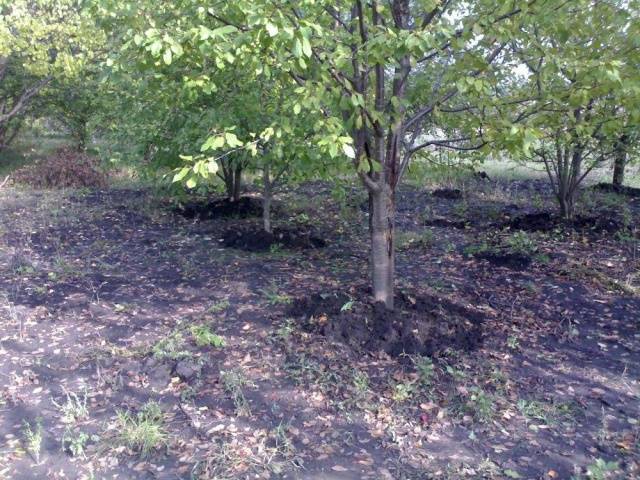 You can reduce the radius - 50 cm will be enough for nitrogenous fertilizers, because the crown of old trees can be very large. It is within a radius of 50 cm from the trunk that most of the root ends are concentrated, which absorb nutrients.