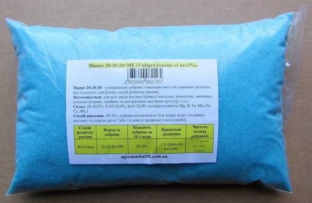 The use of fertilizer Master 20 20 20 is justified for ornamental species, active growth of various conifers, the formation of bunches of grapes, feeding vegetables growing in the open field, field crops.