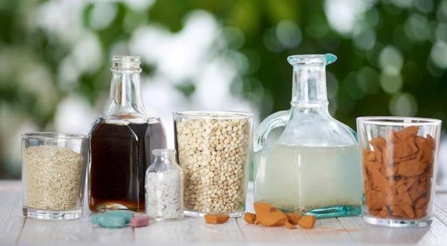 Universal complexes of WMD are sold in garden stores in liquid and granular form. Liquids are released in a concentrated form, therefore, before use, they are diluted with water in accordance with the proportions indicated in the instructions. Plants are sprayed with the finished solution or applied by drip irrigation.