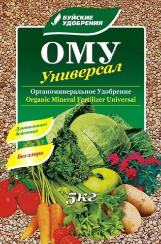 The OMU fertilizer instruction states that the rate of preparation of the fertilizing mixture is 3 kg per 1 m3... When used in greenhouses, the mixture is prepared in the proportion of 1000 kg of fertilizer per hectare. Organomineral fertilizers can be used in both spring and autumn. Top dressing before the onset of winter strengthens the plant's immunity and allows it to calmly survive frosts and temperature extremes. In the spring, the drug is applied according to the following recommendations: