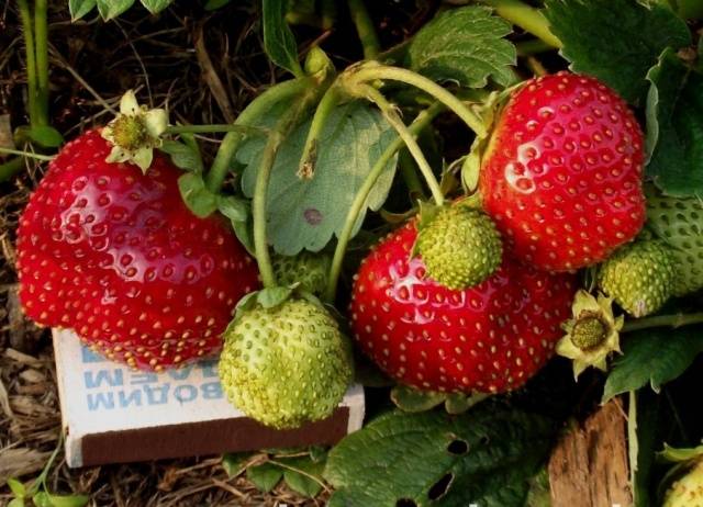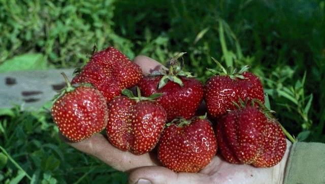 - the first large berries may have an irregular shape, they often grow together, voids form inside such strawberries, berries weighing less than 30 grams do not form voids, aligned, beautiful;