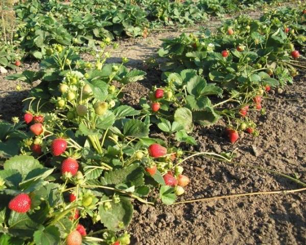 During the fruiting period, strawberries are provided with sufficient watering and potash-phosphorus fertilizers.