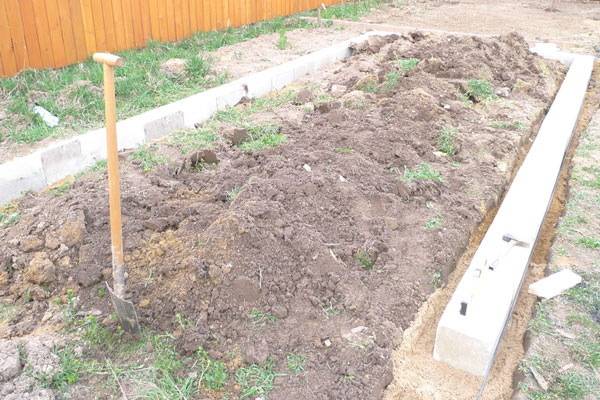 - the gap between the brick or wooden foundation and the walls of the trench is covered with gravel.