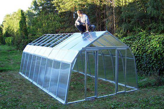 Most often, the frame of factory greenhouses is made of aluminum elements. The finished structure turns out to be mobile and, if necessary, it can be disassembled for storage.