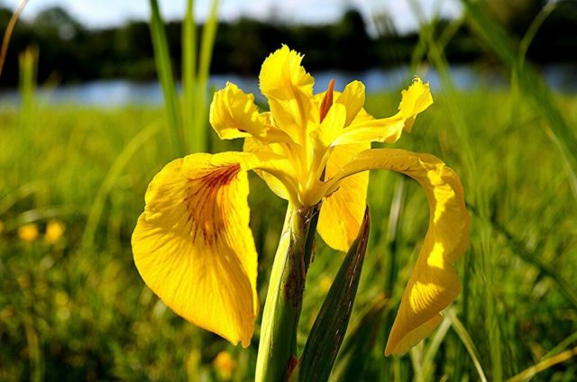 Marsh iris (Iris pseudacorus) can be found naturally. This is an amazing plant that adorns water bodies. It takes root well in private gardens, park areas near ponds.