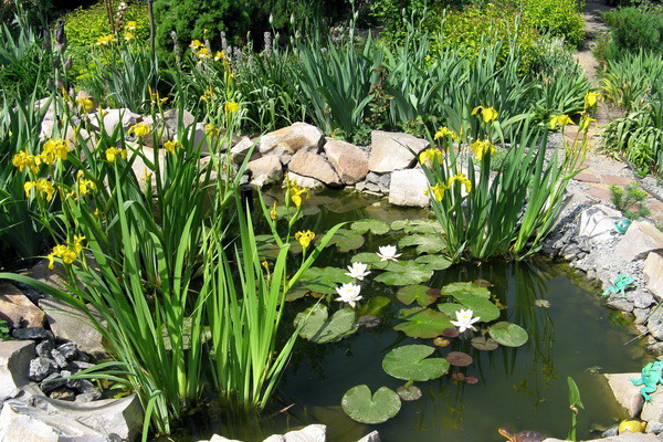 Different aquatic plants can be planted next to marsh iris