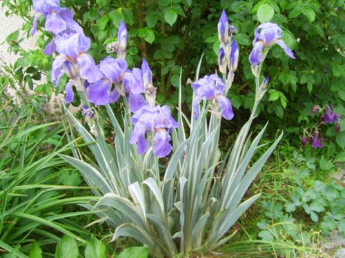 - Iris marsh Variegata. It is famous for its pale blue flowers. He also has decorative leaves: they are bright green with yellow stripes. The culture is especially beautiful in spring.