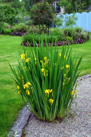 Growth points are located in the lateral part of the marsh iris root, which makes it possible to tilt the shoots horizontally in different directions. Thanks to this, voluminous bushes are obtained.