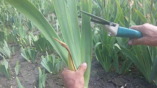 During pruning, a third of the height of the marsh iris leaves is left