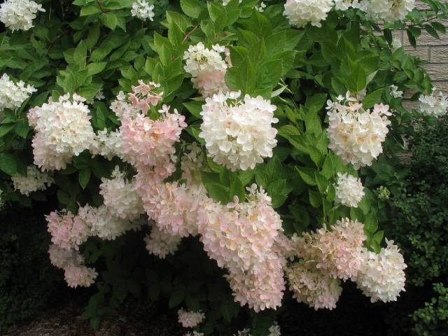Hydrangea has been growing in one place for more than 30 years. The shrub grows rapidly, the length of the shoots increases by 25 cm per year. Flowering begins 4-5 years after planting in the ground. Small inflorescences appear in the second or third year. Grandiflora tolerates winter frosts well, is resistant to diseases and pests.