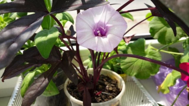 For indoor cultivation, Ipomoea Batat is placed on a well-lit windowsill. In this case, fresh air should be supplied, without the formation of drafts. At home, morning glory sweet potato is grown in hanging pots or volumetric flower pots.