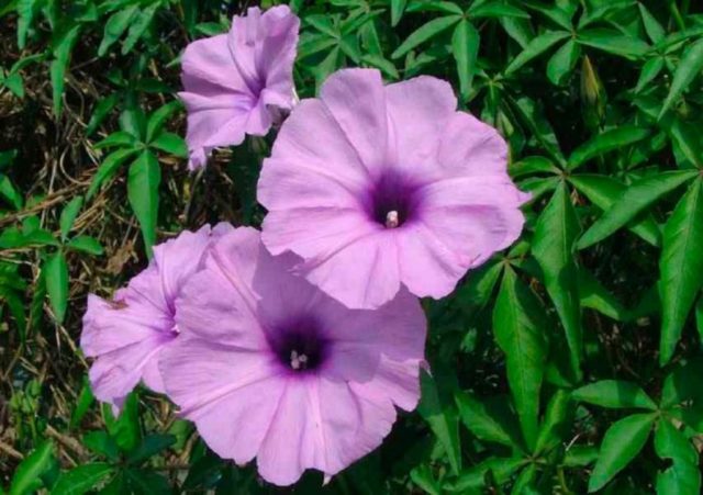 An annual plant with a pubescent stem reaching up to 8 m in length. The leaf blade is smooth, dark green in color. At the beginning of summer, the plant is covered with simple or double flowers of pale pink, red, purple and snow-white color. The tropics of America are considered the homeland of the variety.