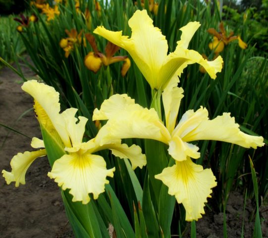 Flowers similar to irises are grown outdoors. They are used in ornamental gardening, as well as for landscaping a personal plot. There are several indoor plants that vaguely resemble irises in flower structure or color, but most of the twins are wild and garden crops.