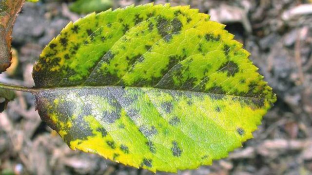 Brown or black spots that appear on the leaf and gradually merge together are a sign of black spot.Leaf plates, as the disease progresses, twist and wither, fall off.