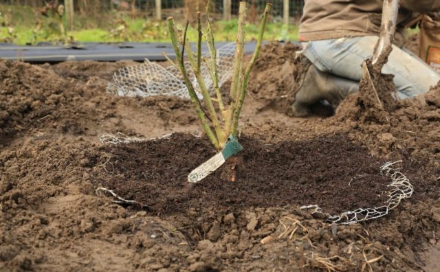 - Place the John Franklin rose in the hole, sprinkle it with soil, deepening the grafting site by 10 cm.