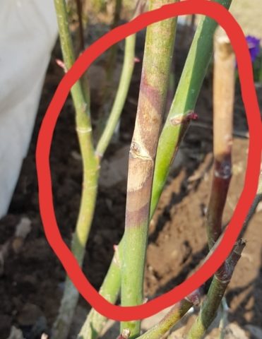 If the integrity of the stem is damaged or an infection develops, there is a risk of burns or cancer. A yellow spot, swelling or growths appears on the shoot.