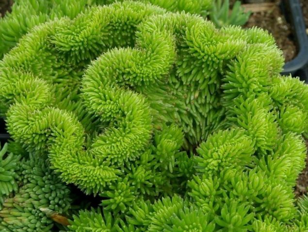 Sedum retracted from the variety Cristatum (Cristatum) is considered one of the most bizarre because of its appearance. It seems to bend along the surface relief, for which it received one more name "Cock's comb".