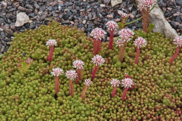 Sedum is a common ground cover plant, against which other garden flowers stand out well.