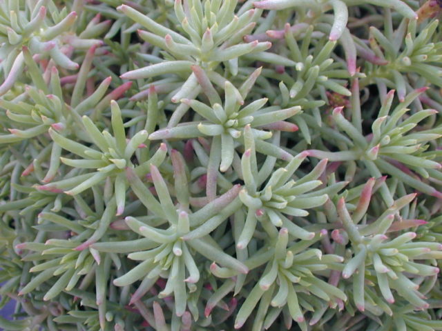 Stems of sedum rock variety Blue Forest outwardly resemble the branches of a coniferous tree