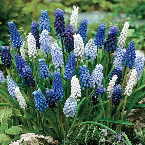 Today, several species of this perennial are known: there is Armenian muscari, Turgenev, racemose, which has inflorescences in the form of bunches. Not only the shape of the flowers differs, but also their shade: muscari can be both blue and blue, and purple, and even combined.