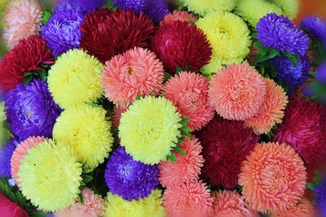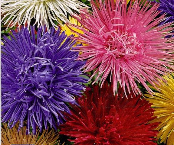 A popular type of annual flowers is known as Chinese Astra or garden aster. A brief description of the colors is as follows: