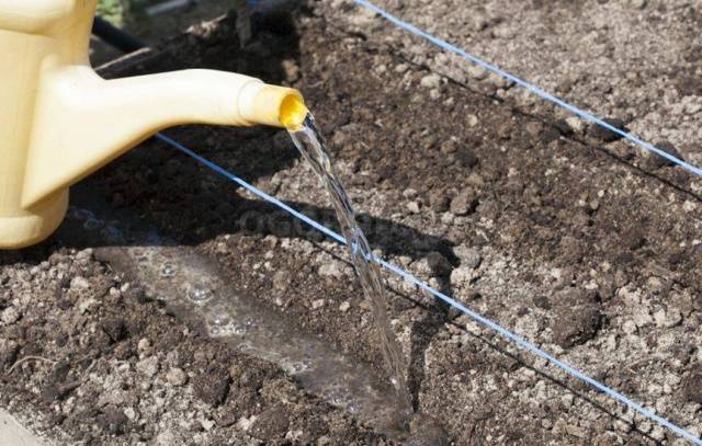 - after a couple of days, irrigate the flower beds with warm water from a watering can with a fine sieve;