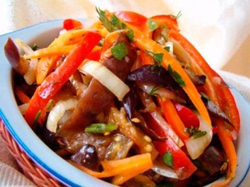 The classic recipe for making "Mother-in-law's tongue" salad for the winter involves the use of eggplants. However, this is far from the only ingredient; there are several more ingredients in the recipe: